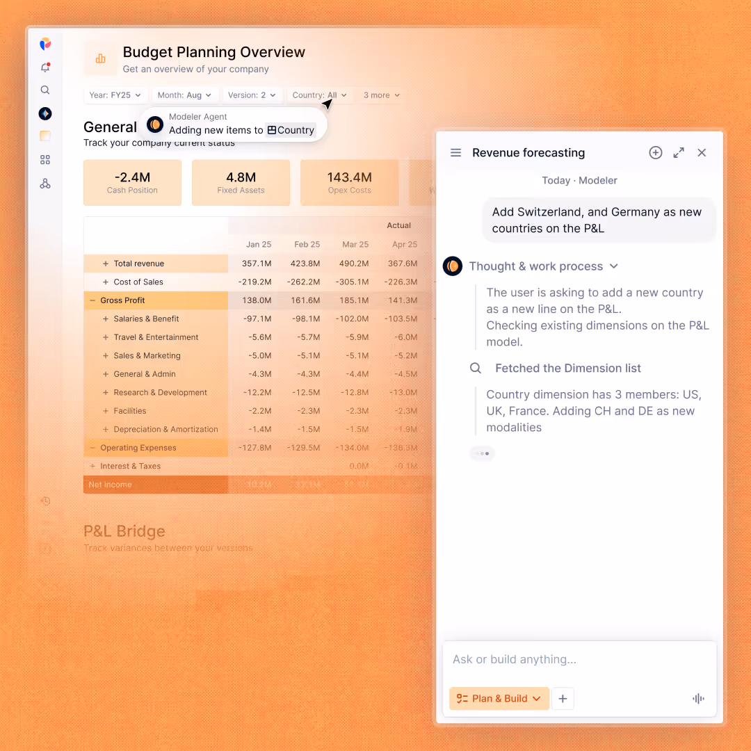 Turn business requirements into structured planning models at record speed. Build a metric, a block, or a full application from natural language.